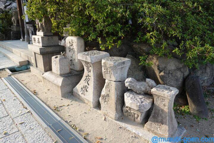 拝殿前には折れた灯篭のようなものが置かれていました。