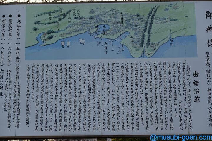 - 神宮皇后が201年、三韓征伐凱旋後に生田神社を創建するにあたり7番目に巡拝したことを起源とする説