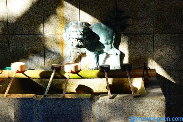 手水舎では珍しいのですが、狛犬(?)が水を出してくれます。