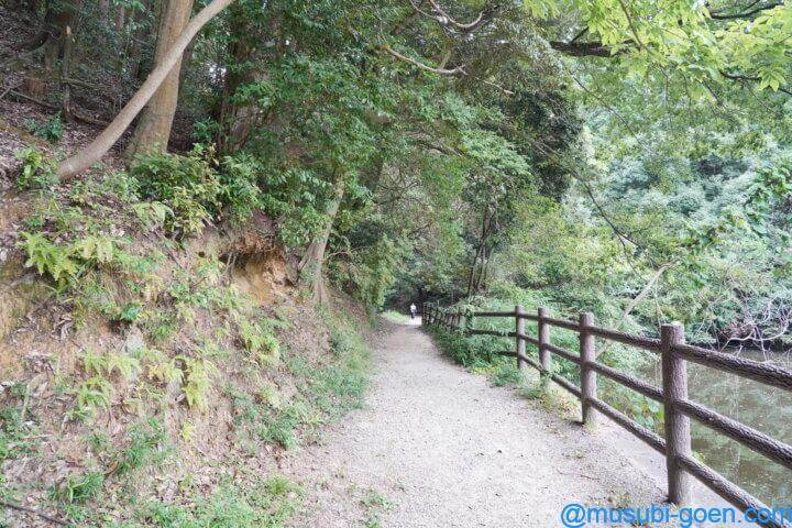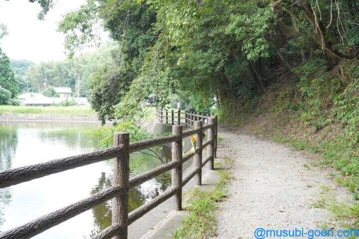 山の辺の道は、石上神宮の鏡池に到達します。