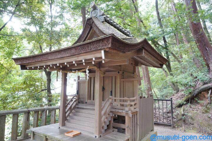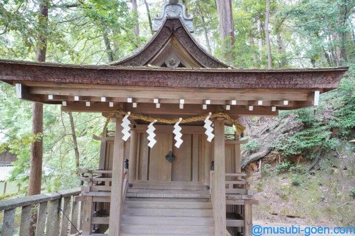 以前は天理市三島町小字神田の地に鎮座していましたが、 平成2年1月に石上神宮の道路沿い社号標の向かい側に遷座となりました。
