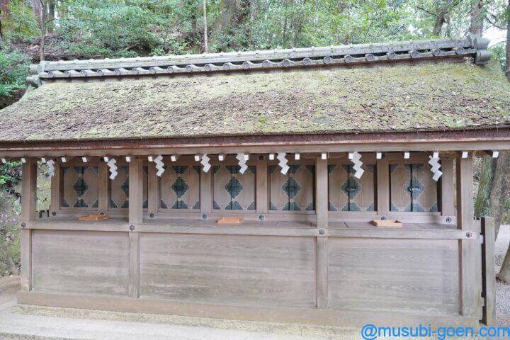 神饌所です。灯篭が前に置かれています。