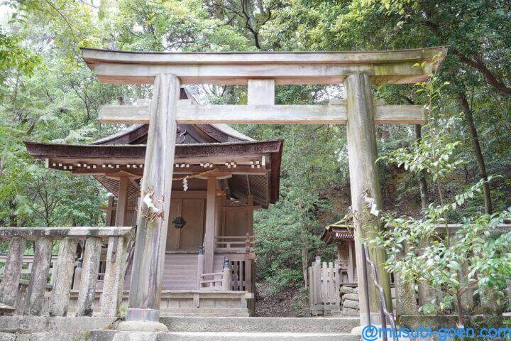大きな道路沿いの社号標を西側に進み、布留側の手前を少し入ったところに鎮座しています。