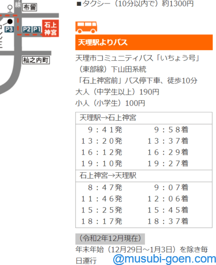 最新情報はこちらのサイト(石上神宮、交通案内)を参照ください。